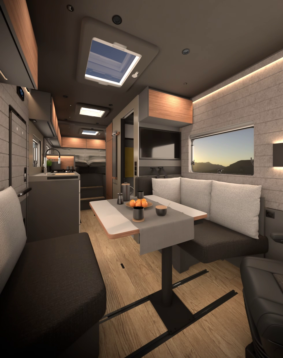 Stell dir vor: Während du an einem kalten Skitag noch oben auf dem Berg stehst und bereit bist für die letzte Talfahrt. Du aktivierst mit einem Fingertipp das passende Szenario. Dein Reisemobil heizt vor und bringt deinen Innenraum auf deine Wohlfühltemperatur, das Wasser heizt für die Dusche auf und das Licht geht an. Du kannst bei Ankunft sofort entspannen.