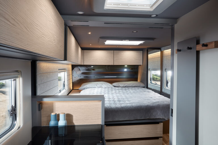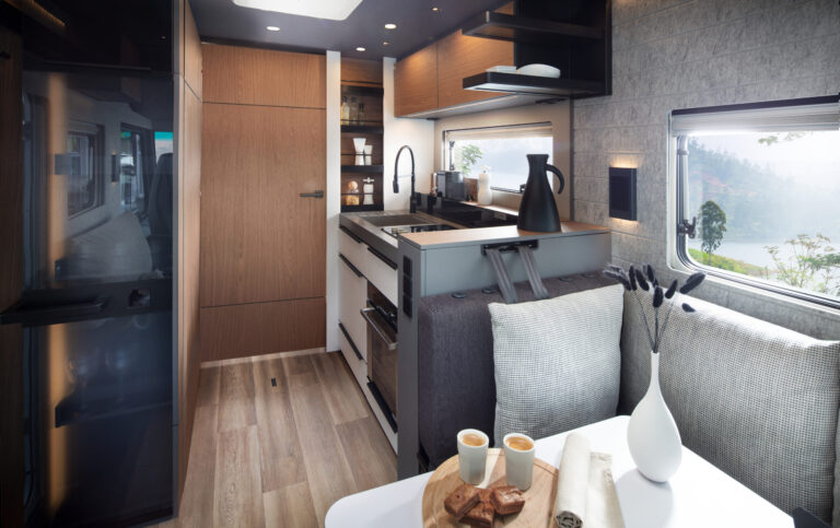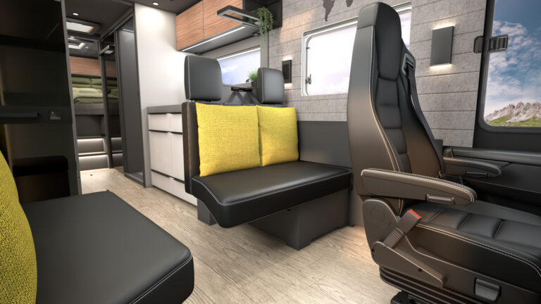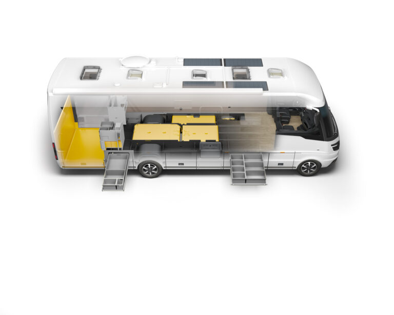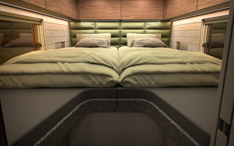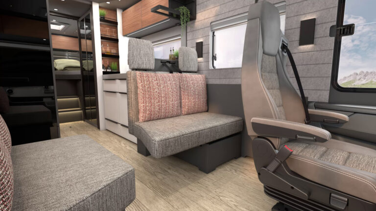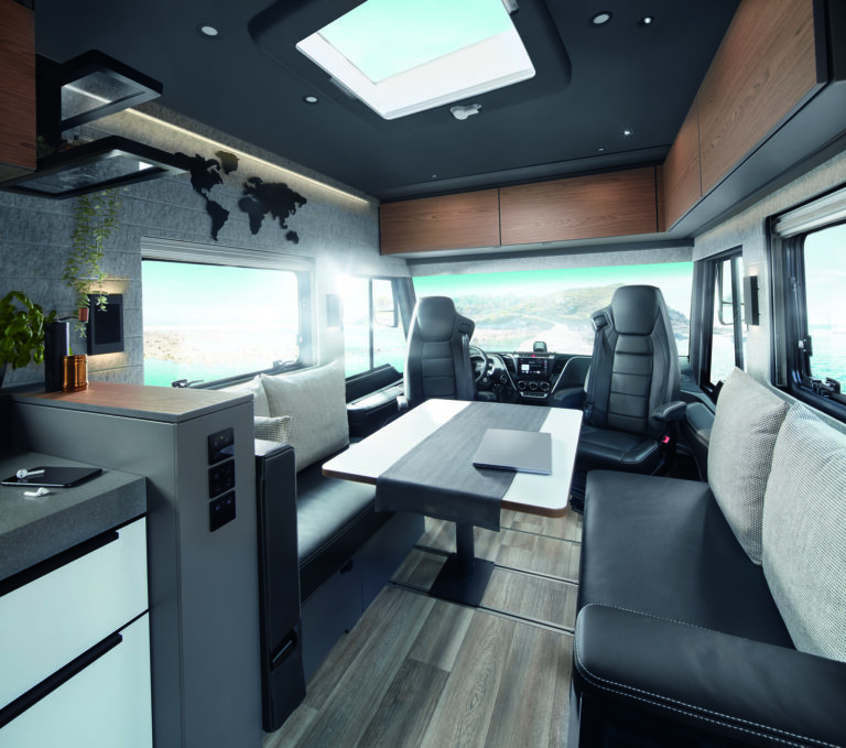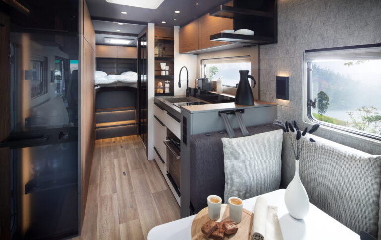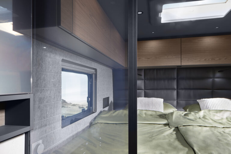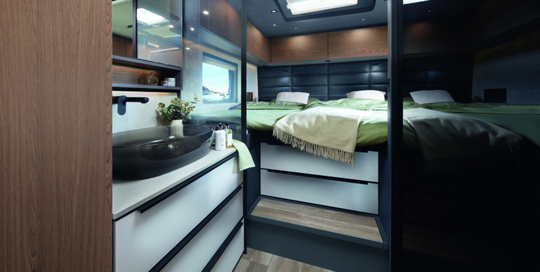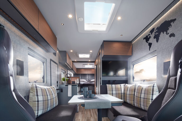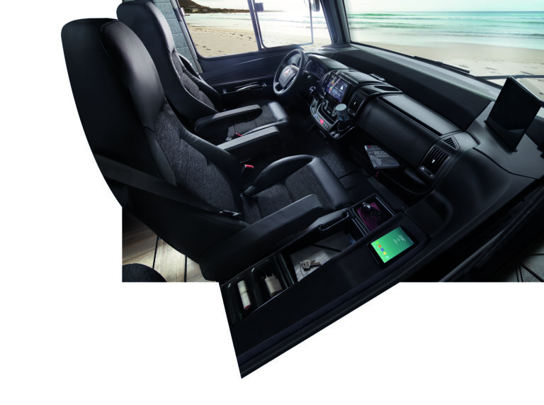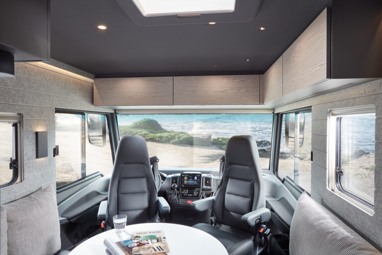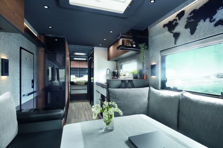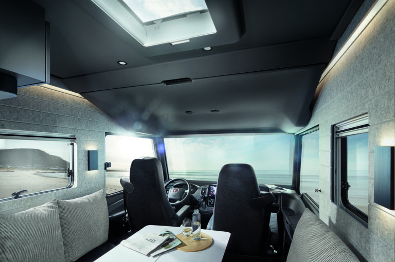 NIESMANN+BISCHOFF – Flair 880 – view from the living area towards the cockpit with optional lifting bed