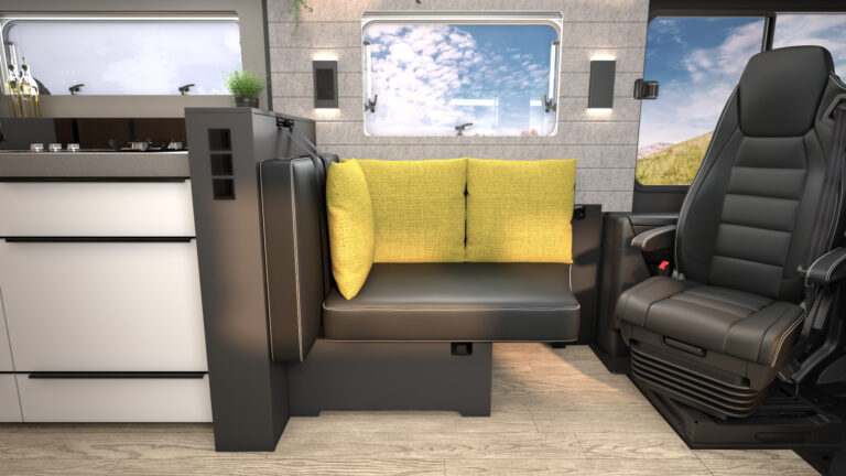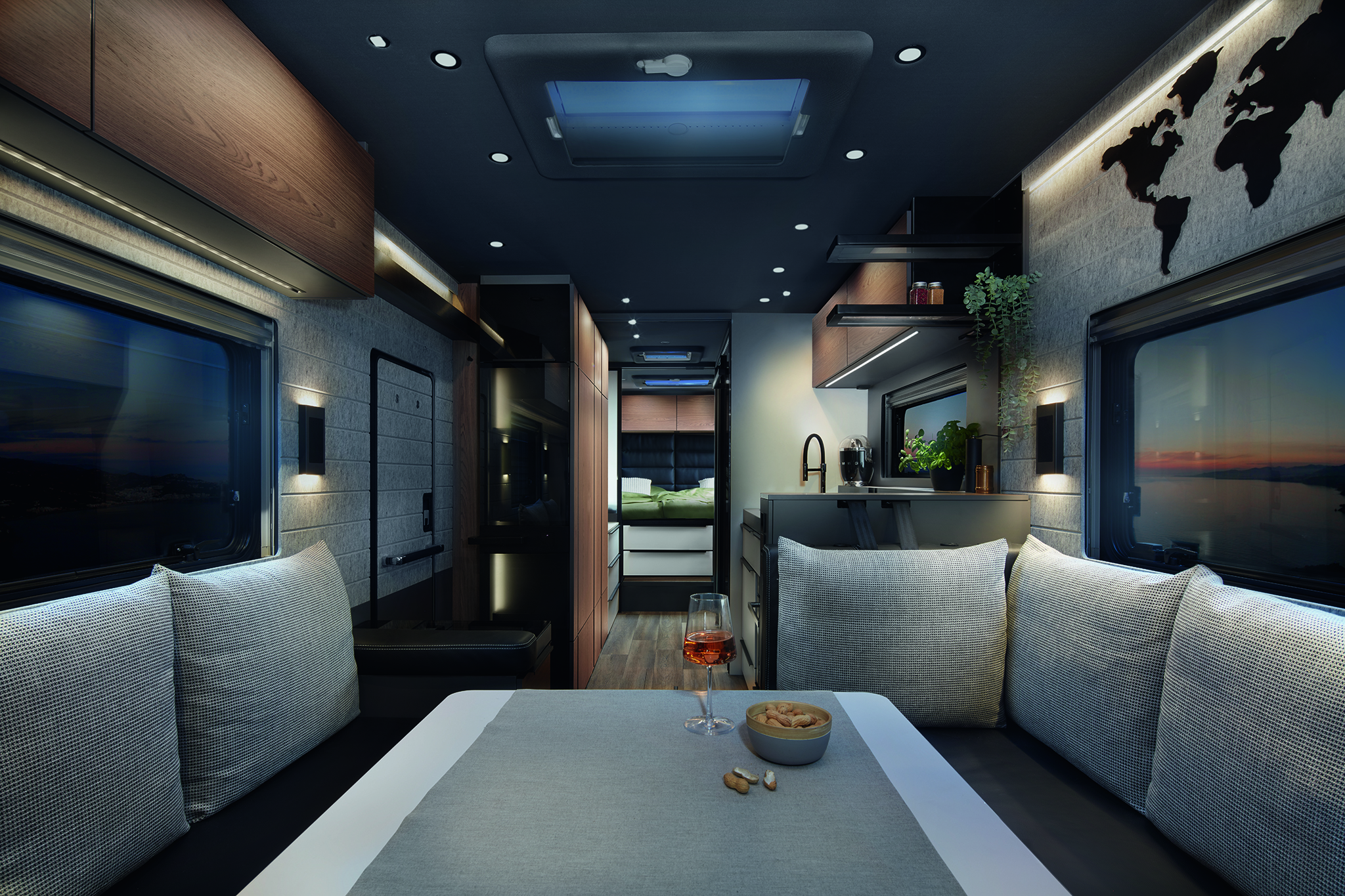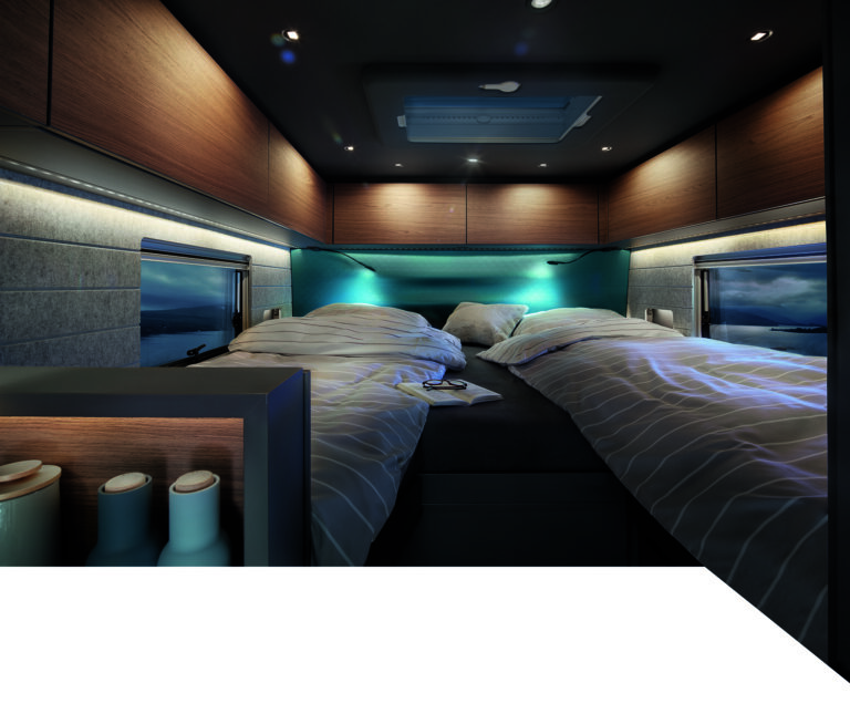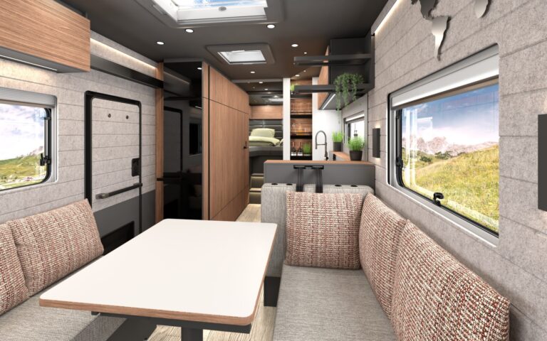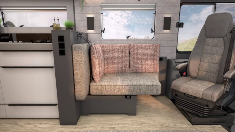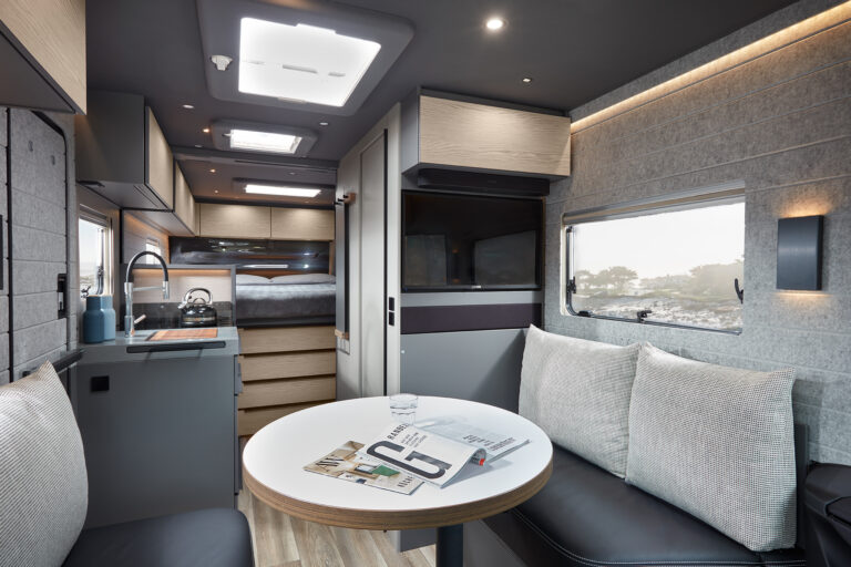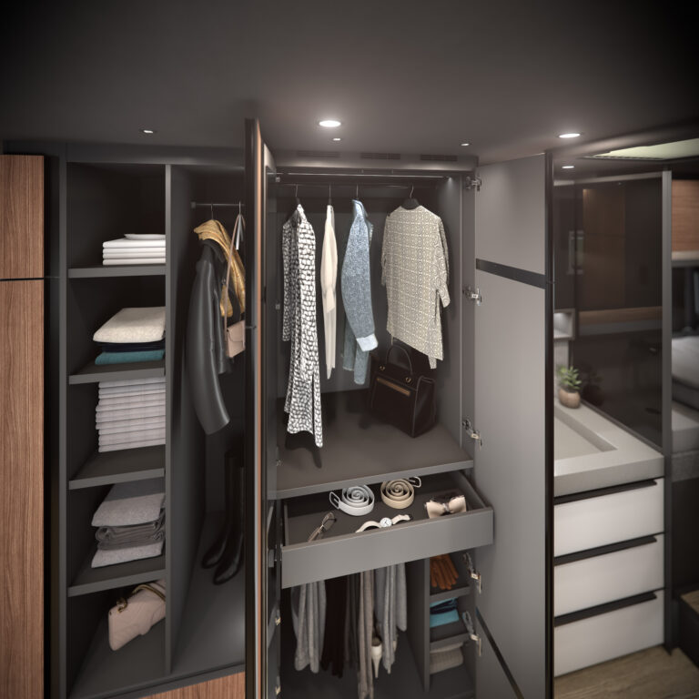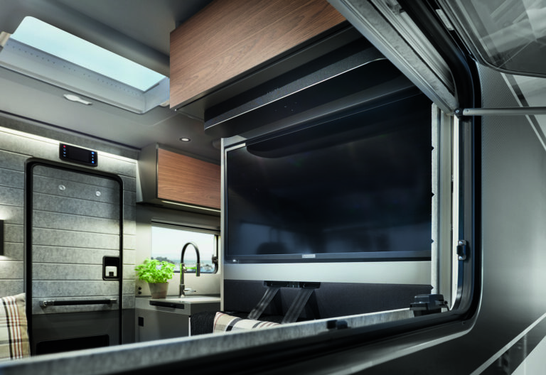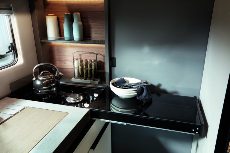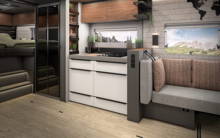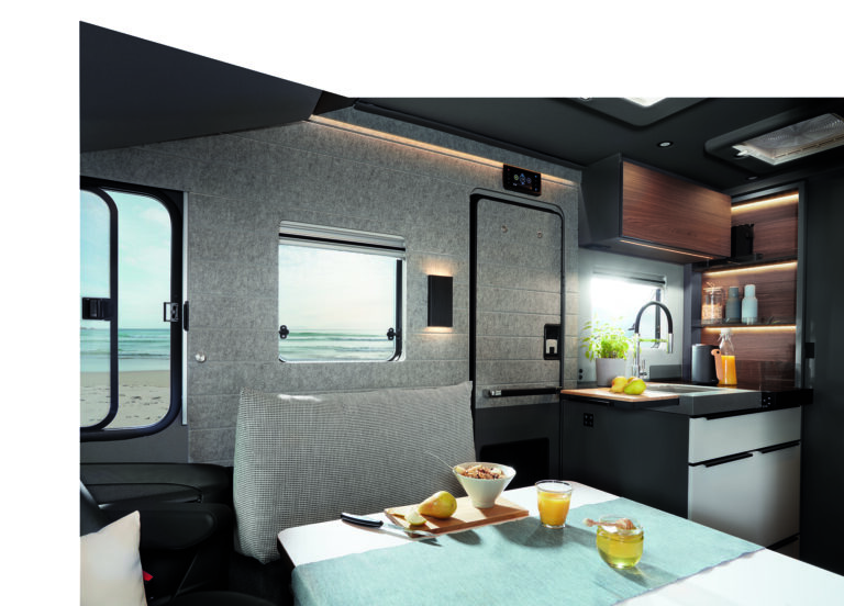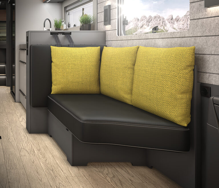 NIESMANN+BISCHOFF – Flair 880 – view from the living area towards the cockpit with optional lifting bed