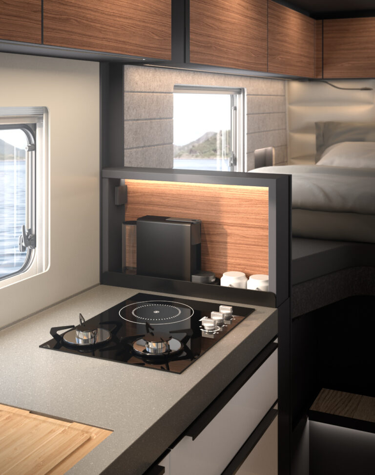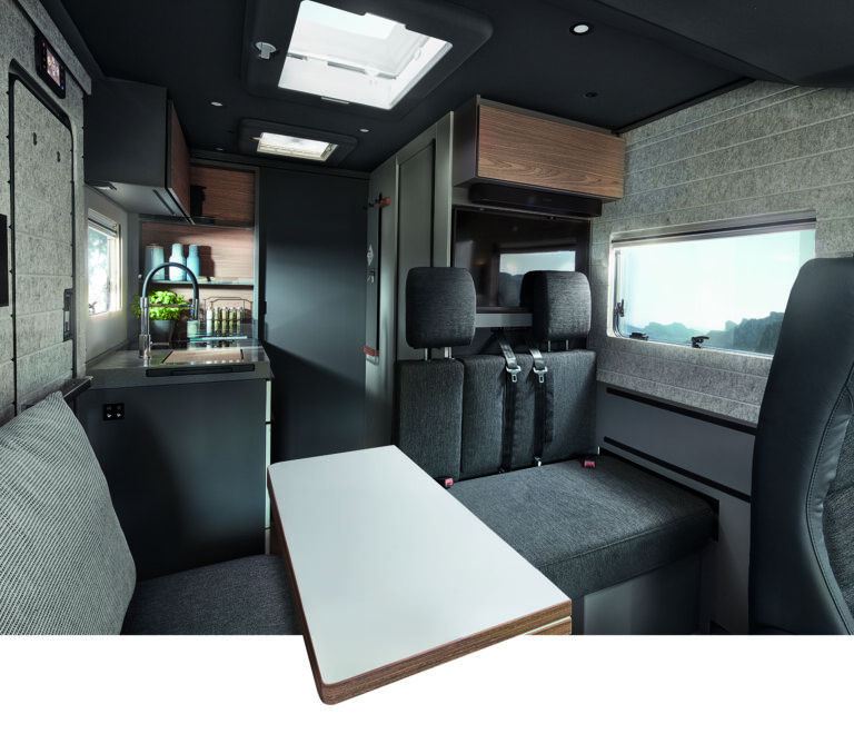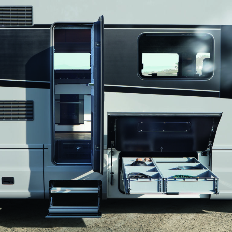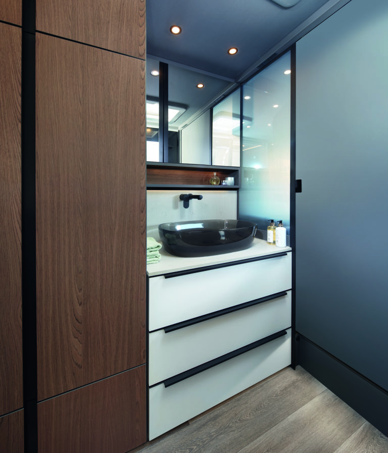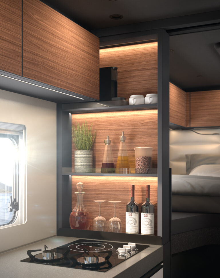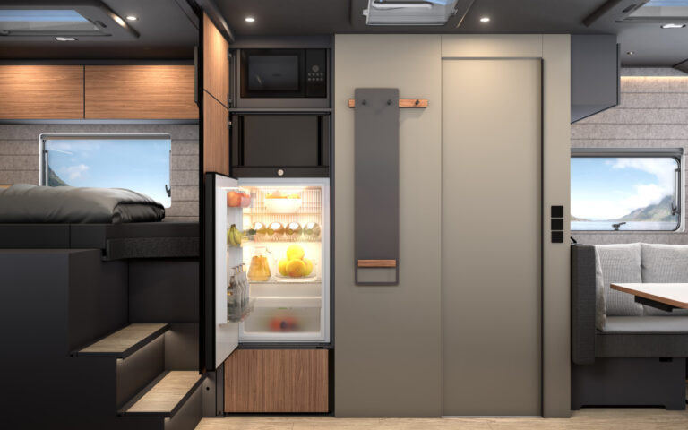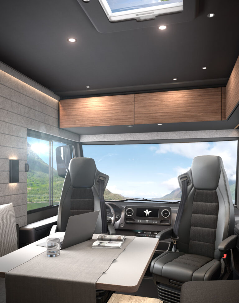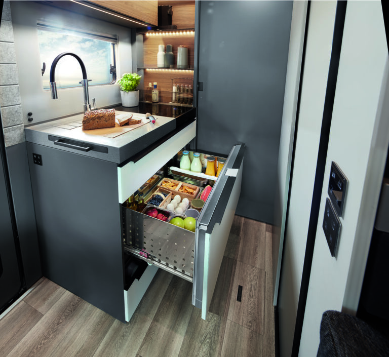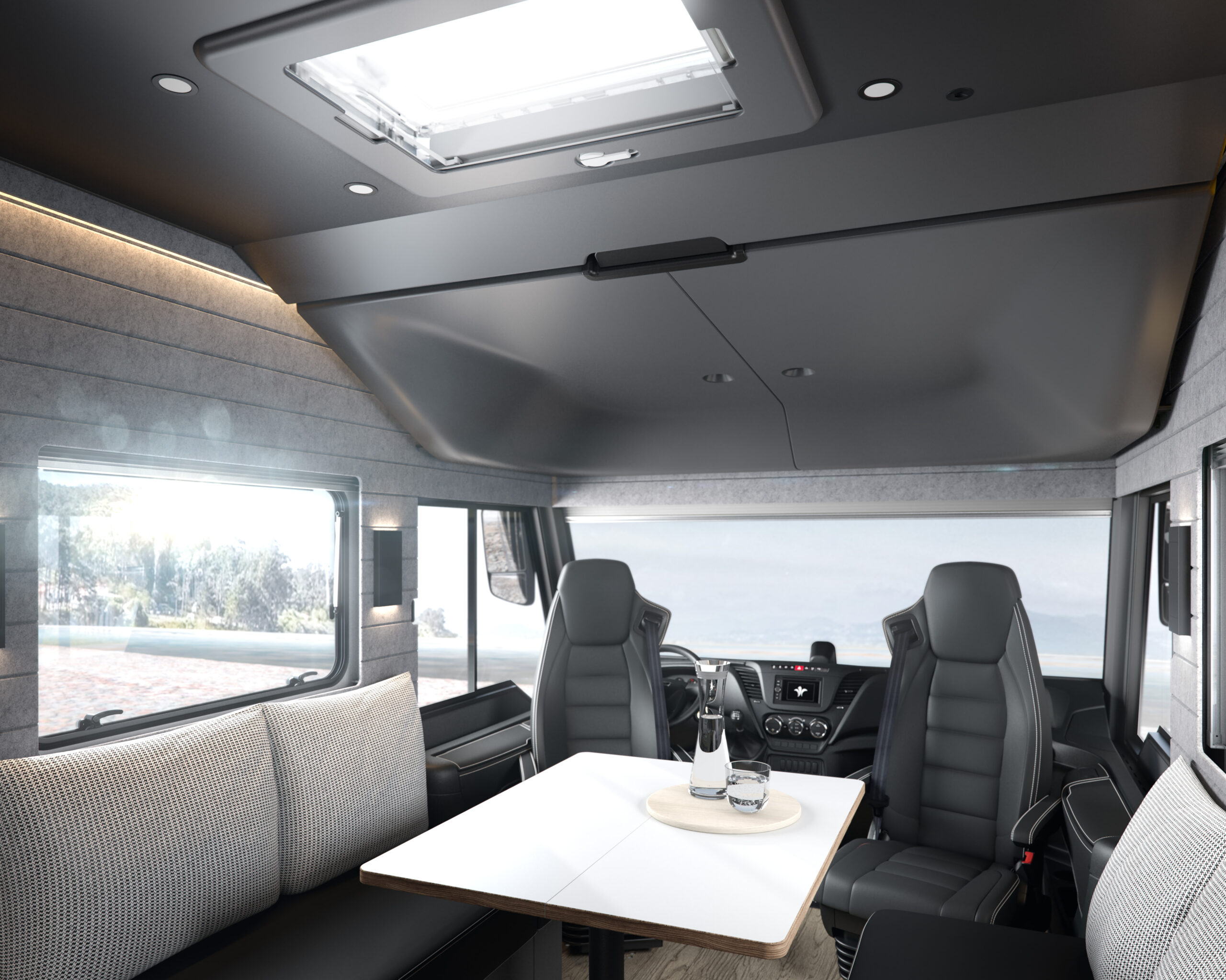 NIESMANN+BISCHOFF – Flair 880 – view from the living area towards the cockpit with optional lifting bed