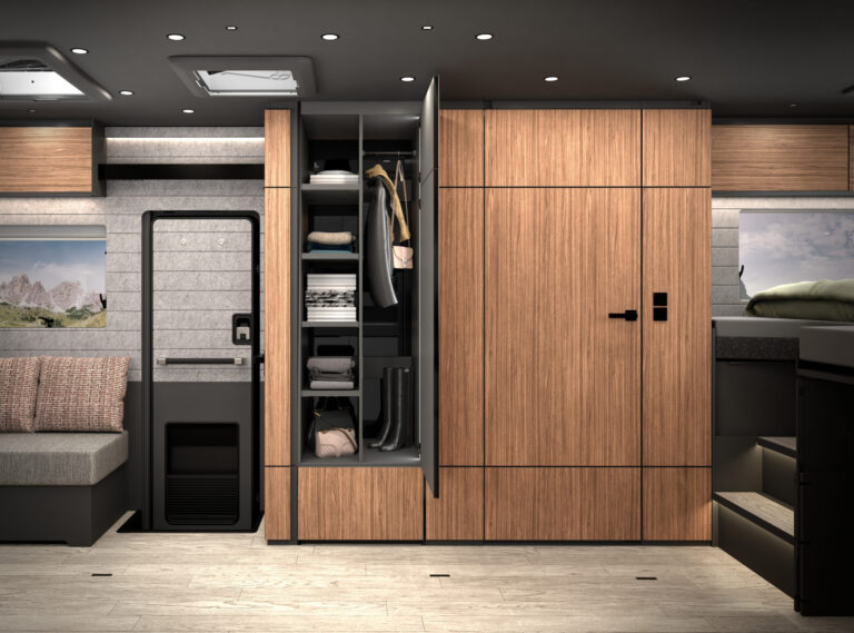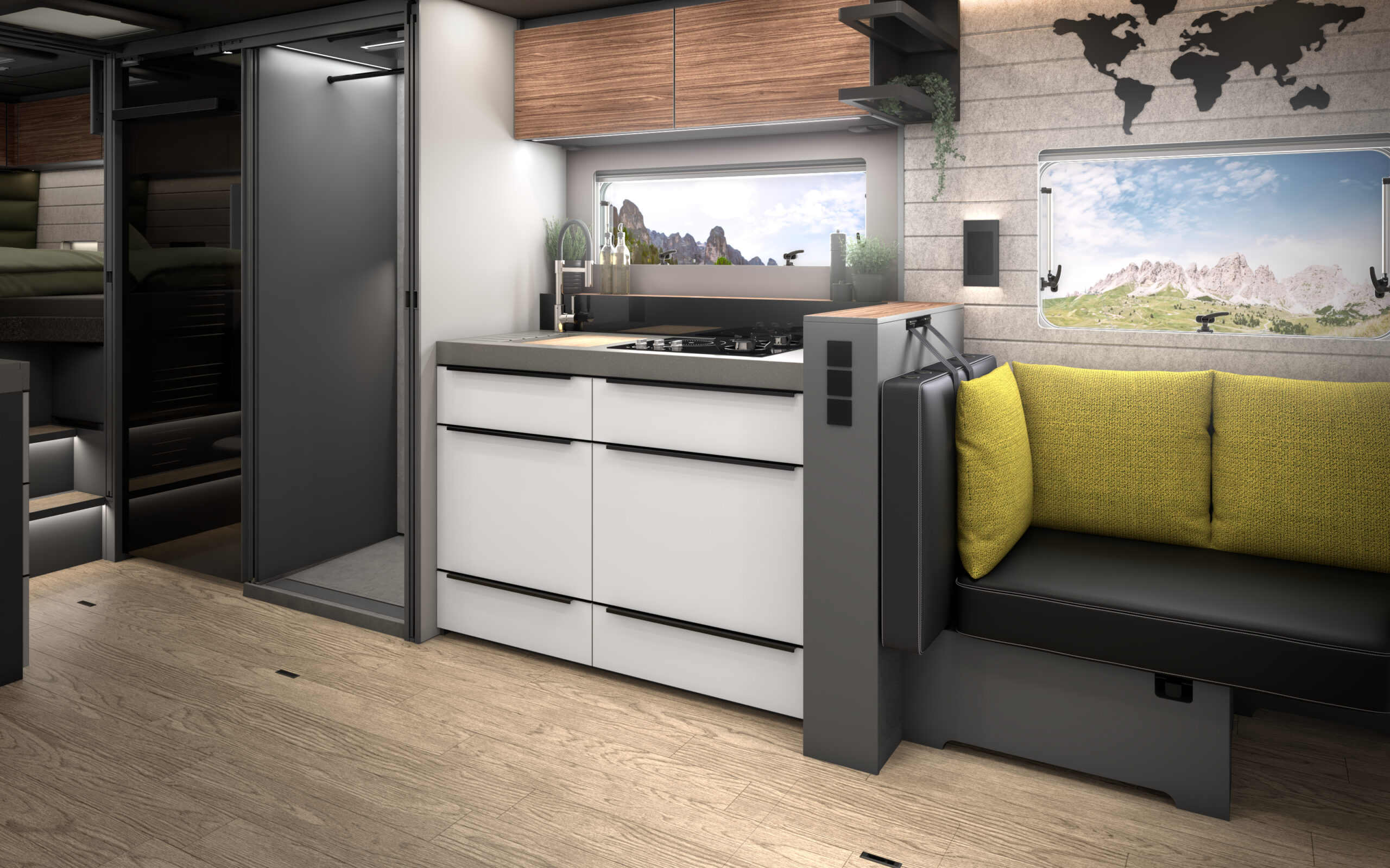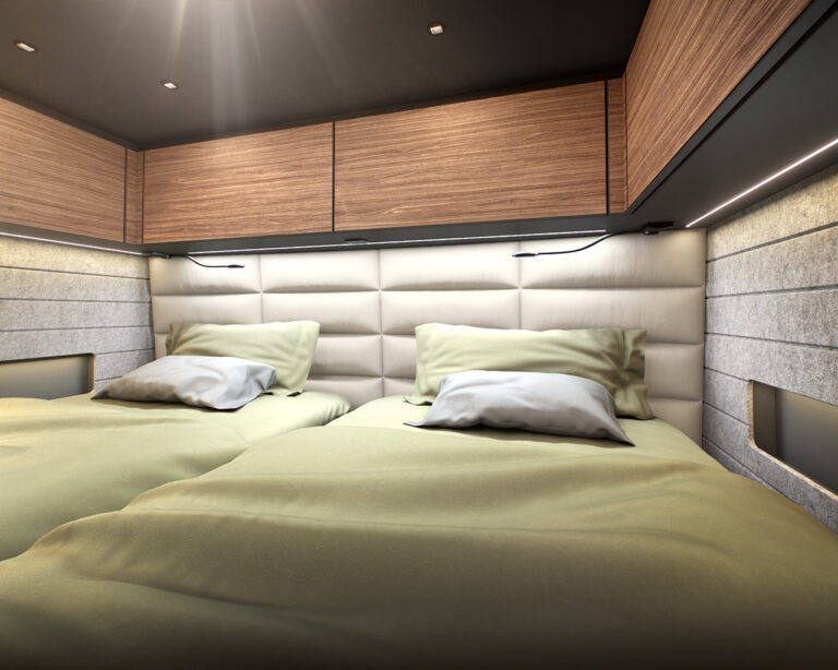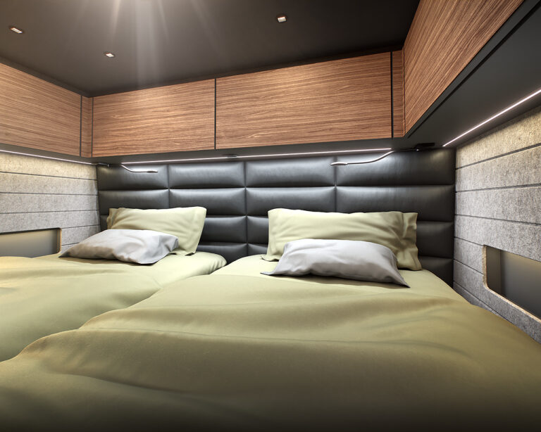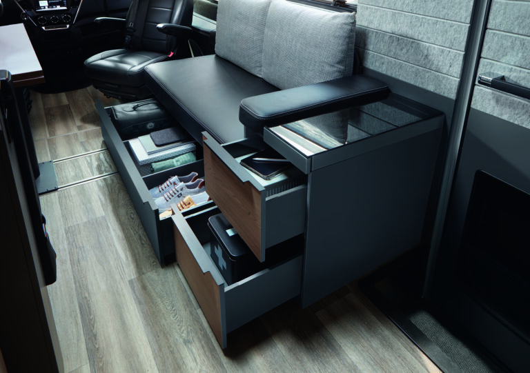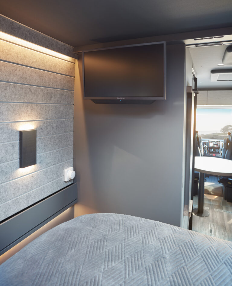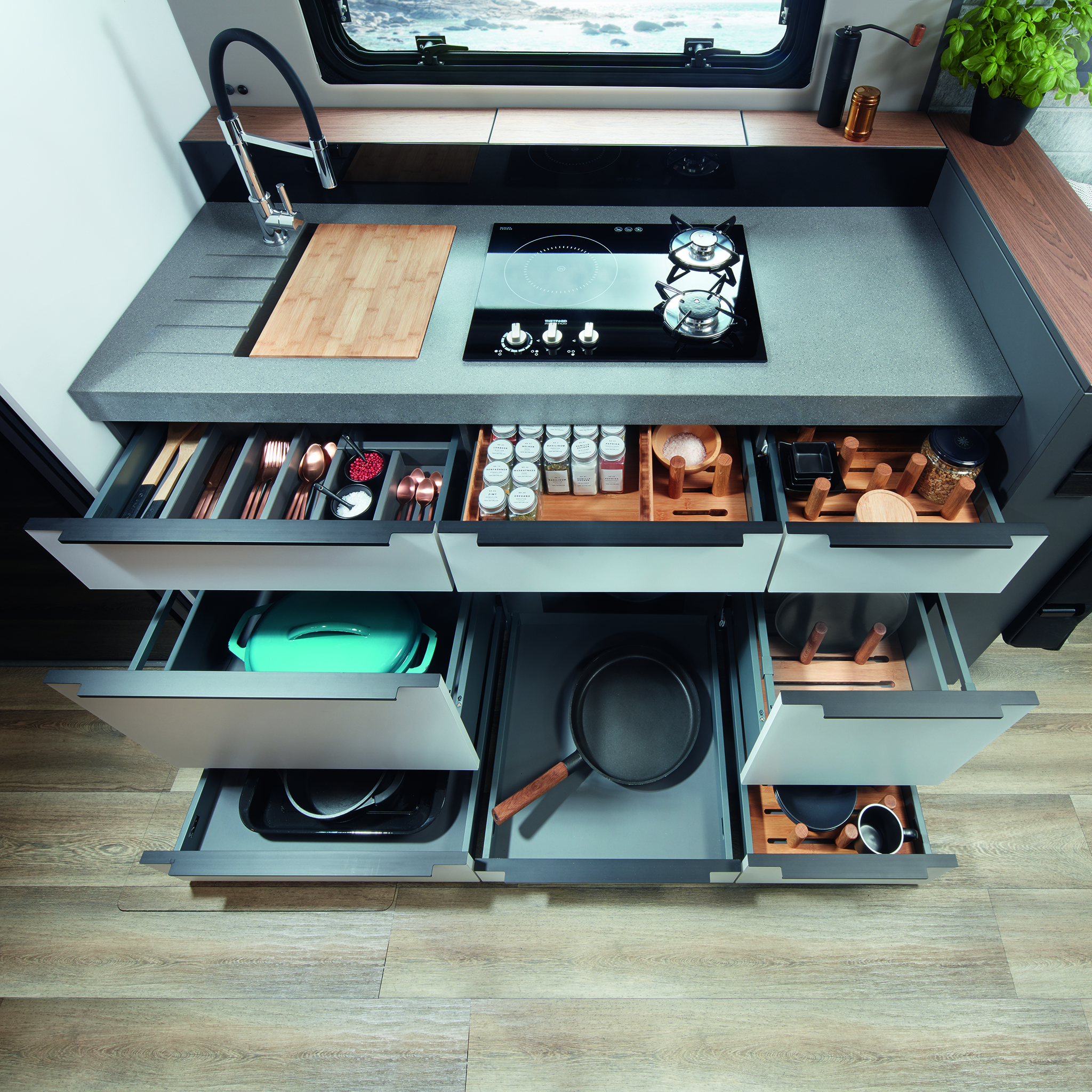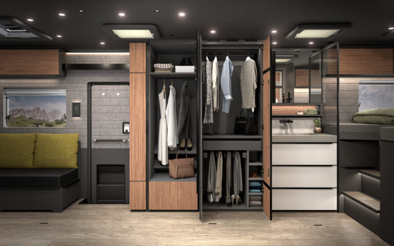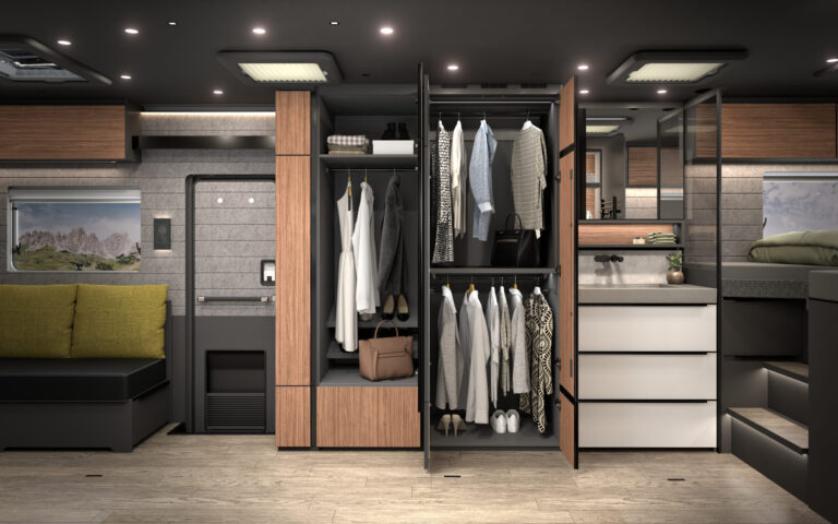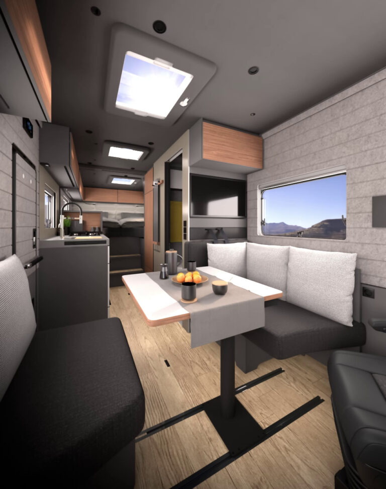NIESMANN+BISCHOFF – Flair 880 – view from the living area towards the cockpit with optional lifting bed