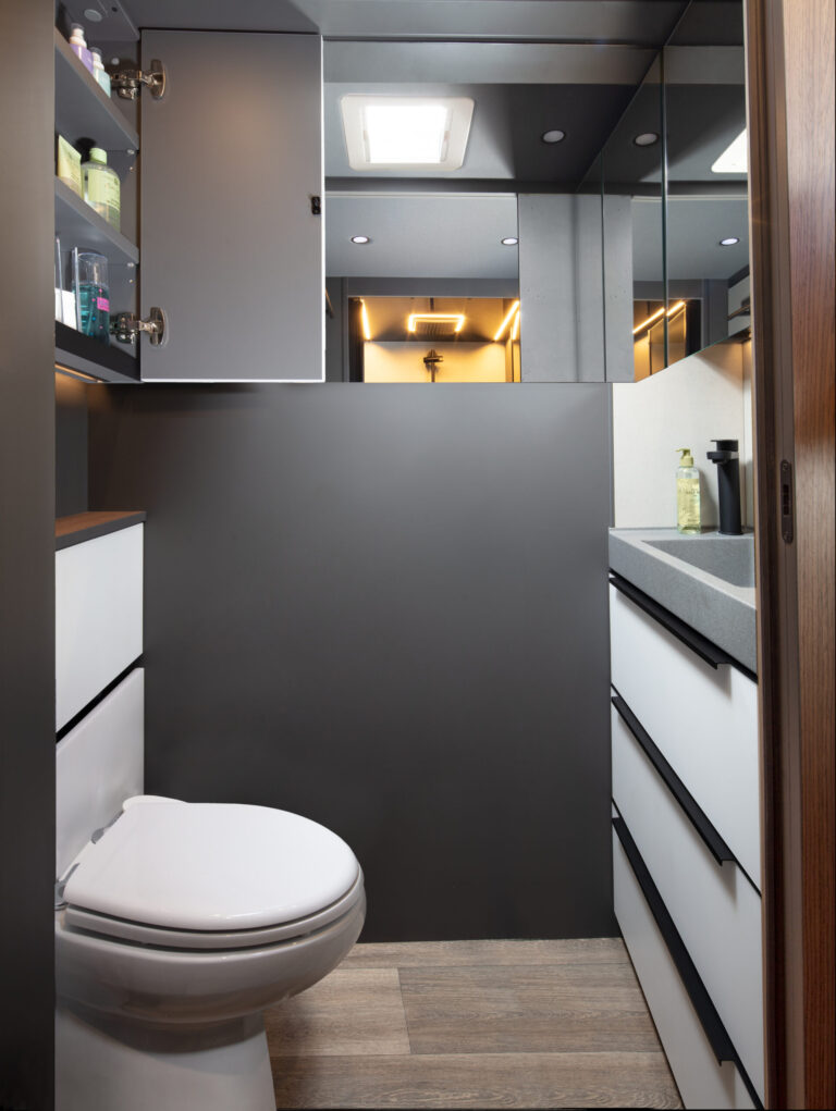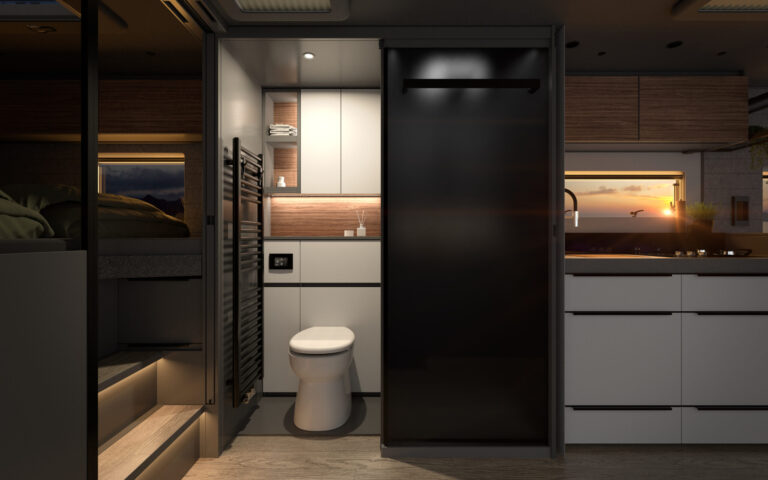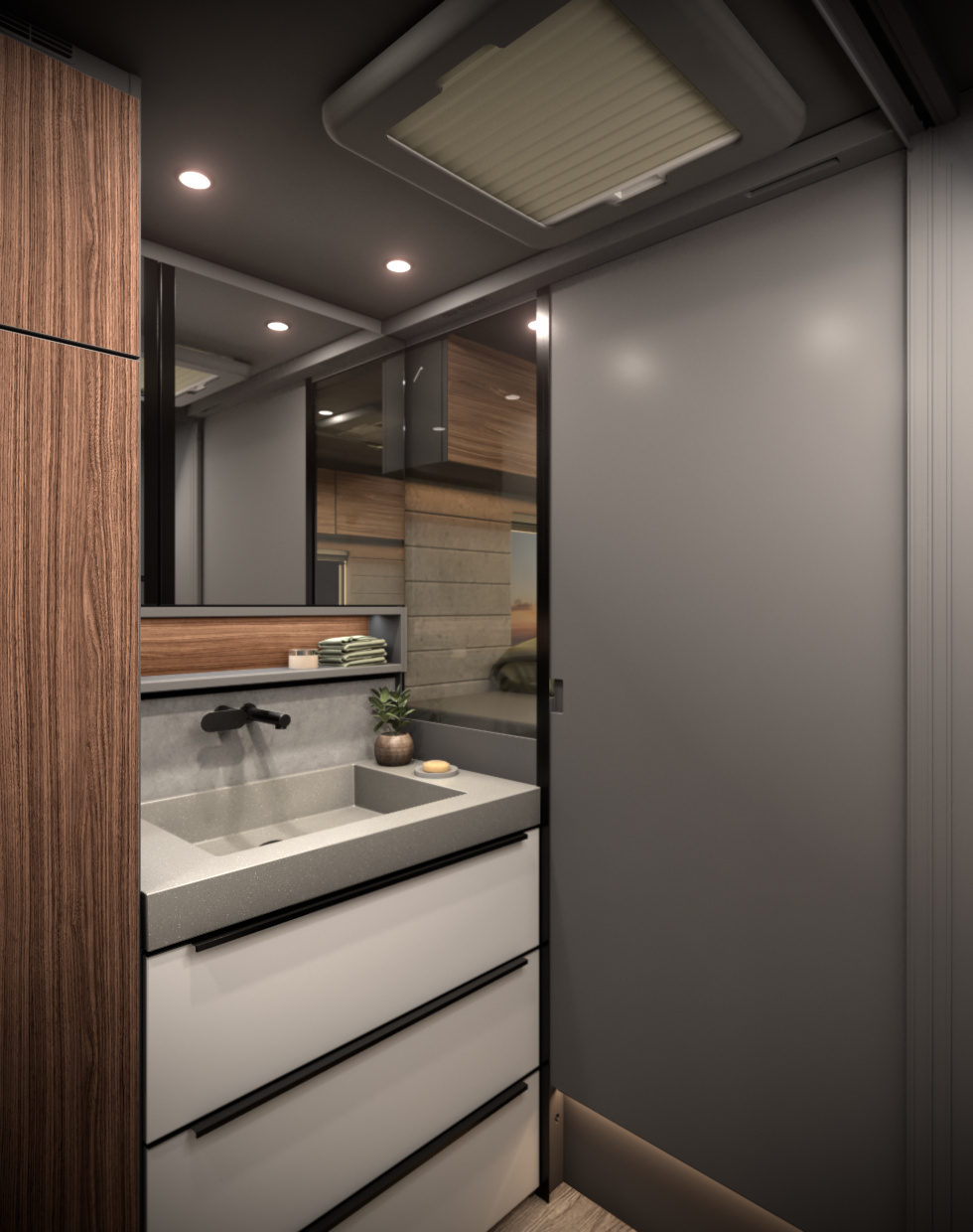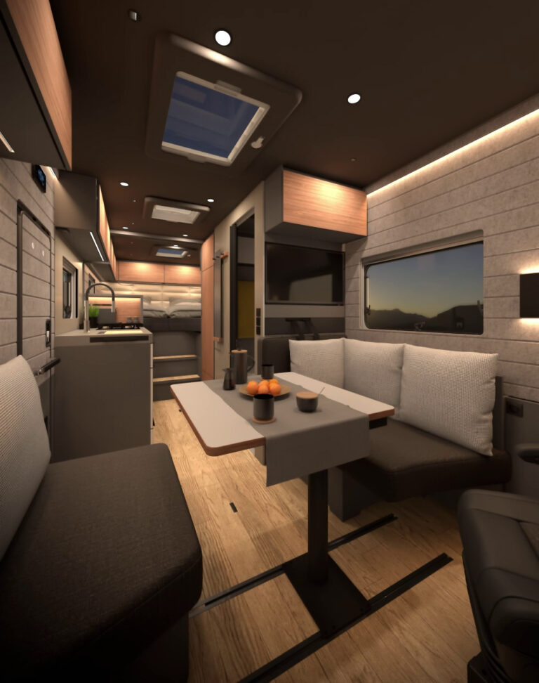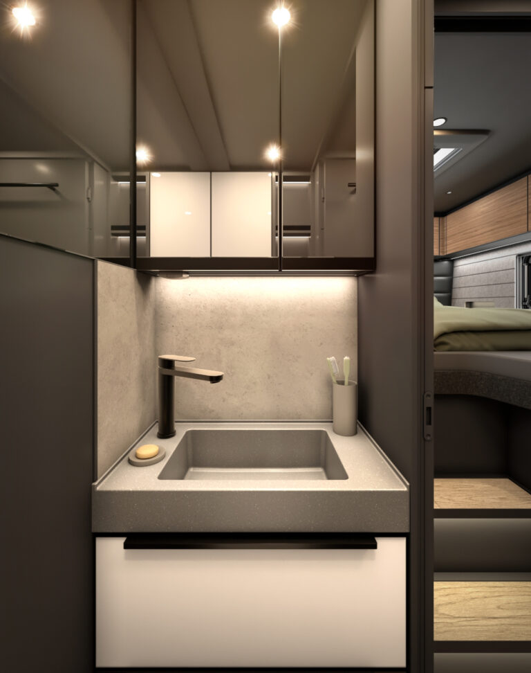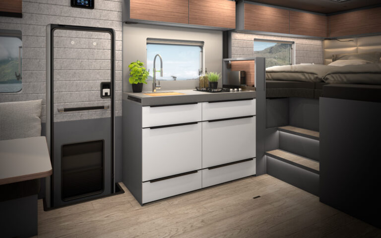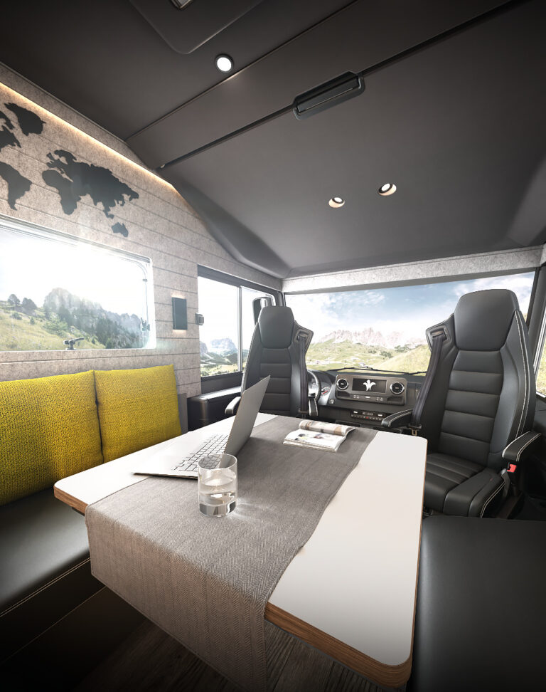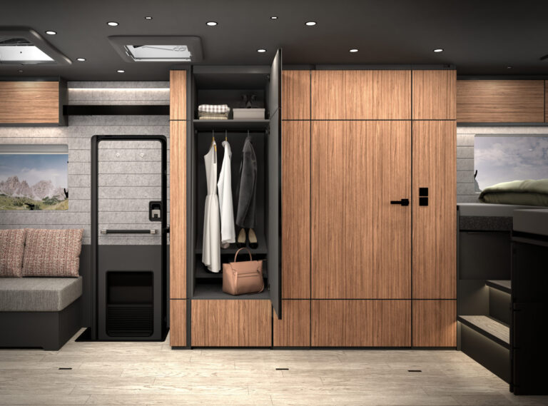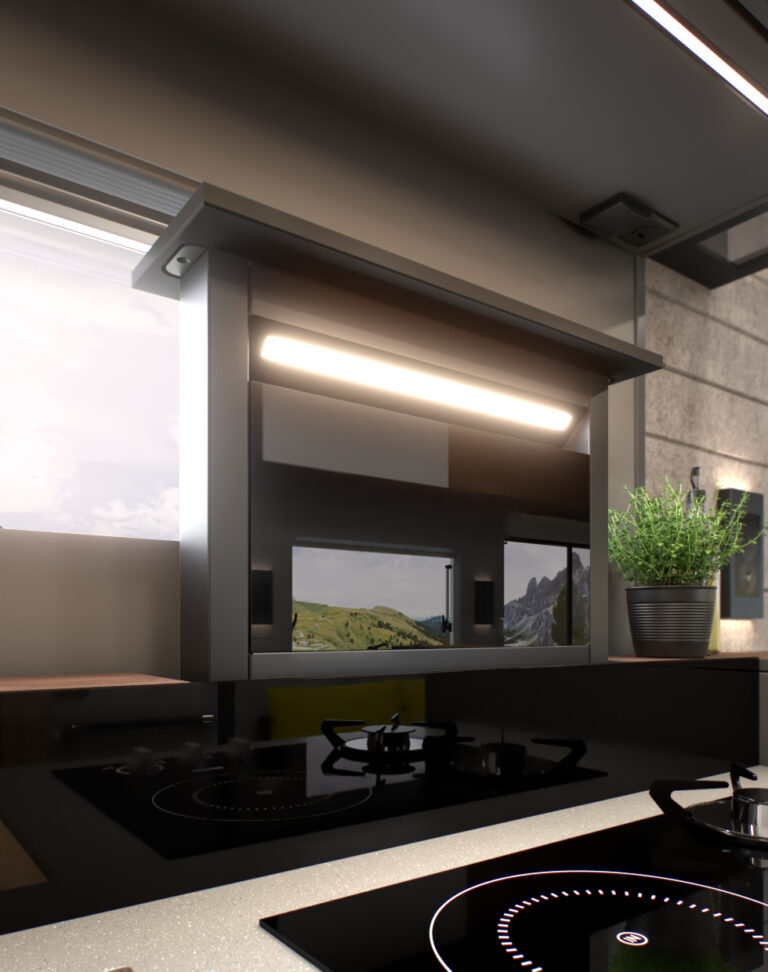 NIESMANN+BISCHOFF – Flair 880 – view from the living area towards the cockpit with optional lifting bed