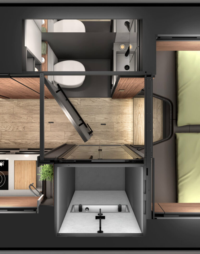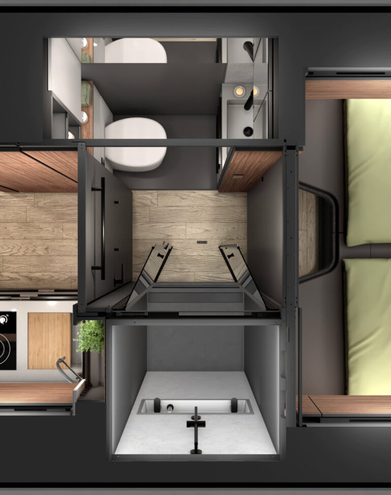 NIESMANN+BISCHOFF – Flair – glass dividing wall to sleeping area optional button for making it opaque