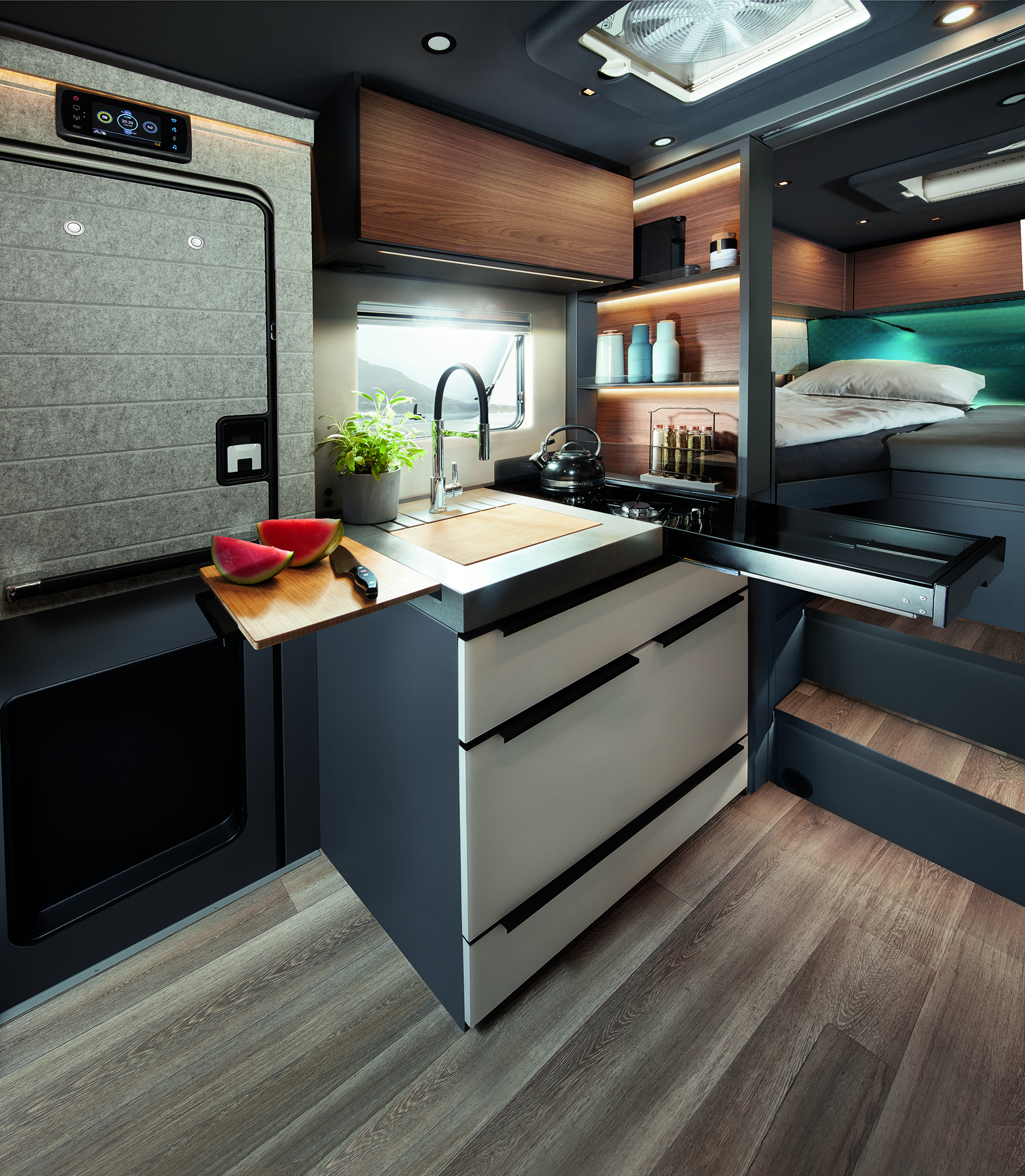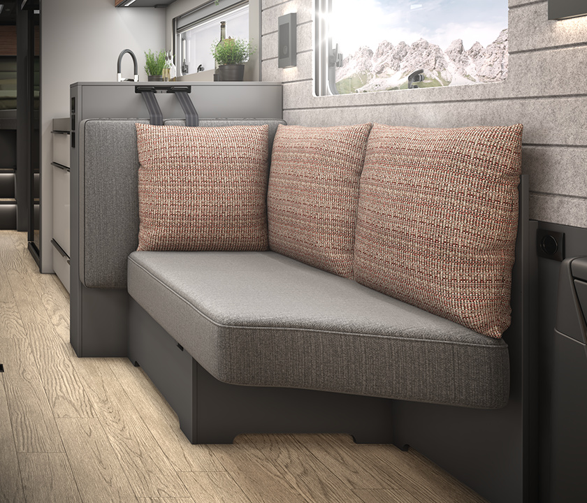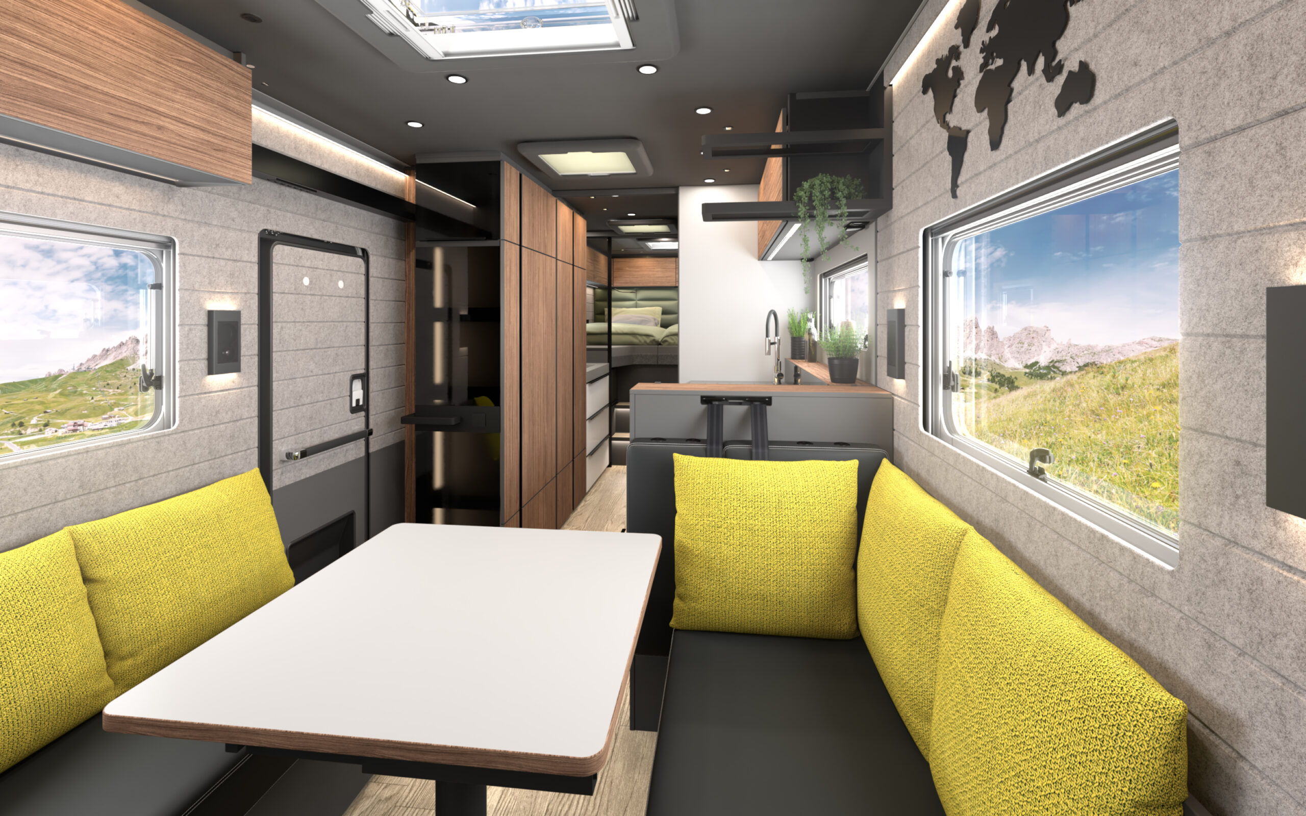 NIESMANN+BISCHOFF – Flair 880 – zona giorno con vista verso il cockpit con letto basculante opzionale